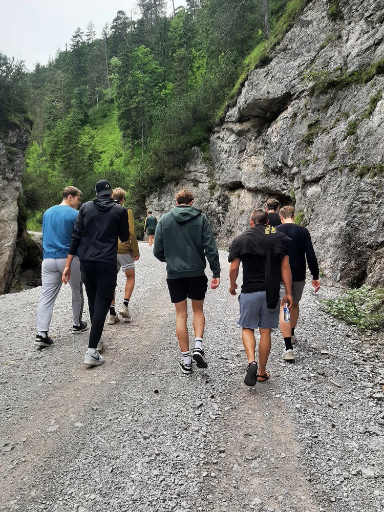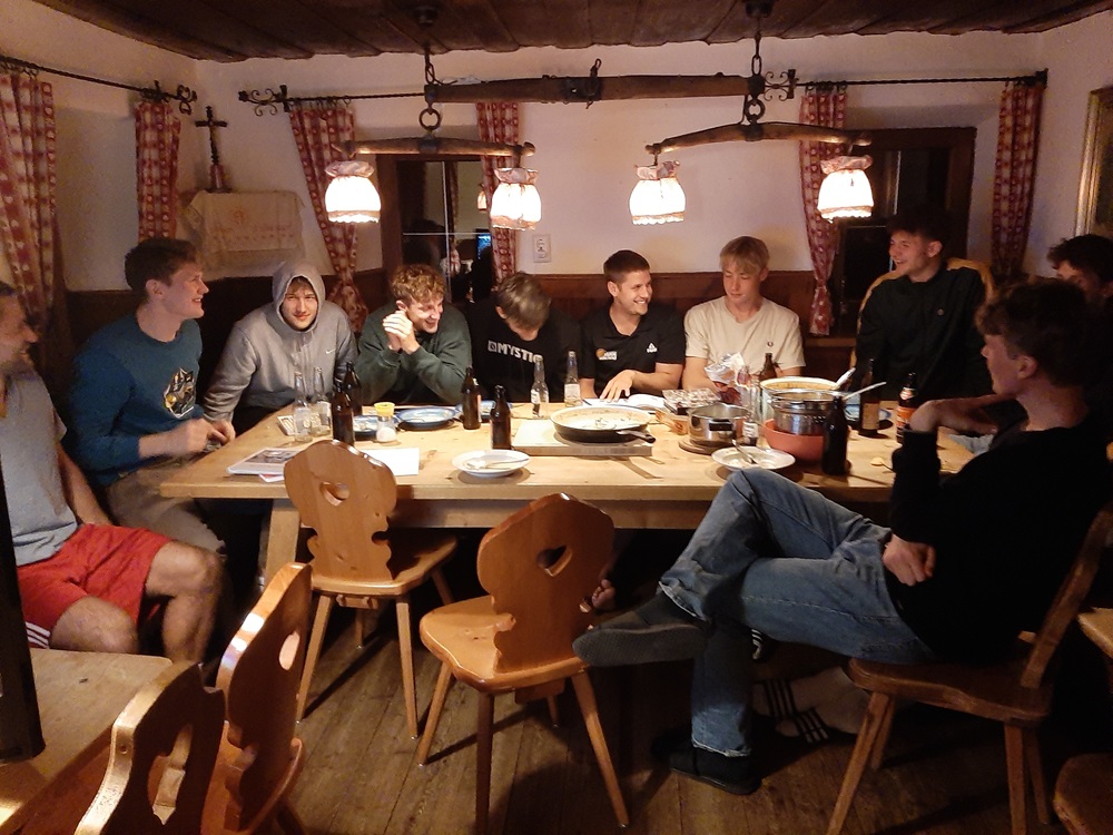 Dieser Makel ist nun behoben. Elf Spieler machten sich am vergangenen Freitag auf, um ein Wochenende im Durlerhof in Waidring zu verbringen. Schon der erste Abend war voller Programm und leerte die Teamkasse. Der angedachte Kurzbesuch der Kneippanlage dehnte sich in einen abendfüllenden Aufenthalt aus, solche Anziehungskraft genoss das kalte Wasser. Der Plan, bis zum albernen Fußballspiel der Deutschen mit dem Kochen der Bolognese fertig zu werden, ging daher nicht ganz auf. Die Küchencrew verpasste die erste Halbzeit der Ballschänder. Ein fabelhaftes Abendessen, viele Tüten Chips, akademisch geprägte Gespräche und ein professionelles Frühstück später war es plötzlich Samstagmittag.