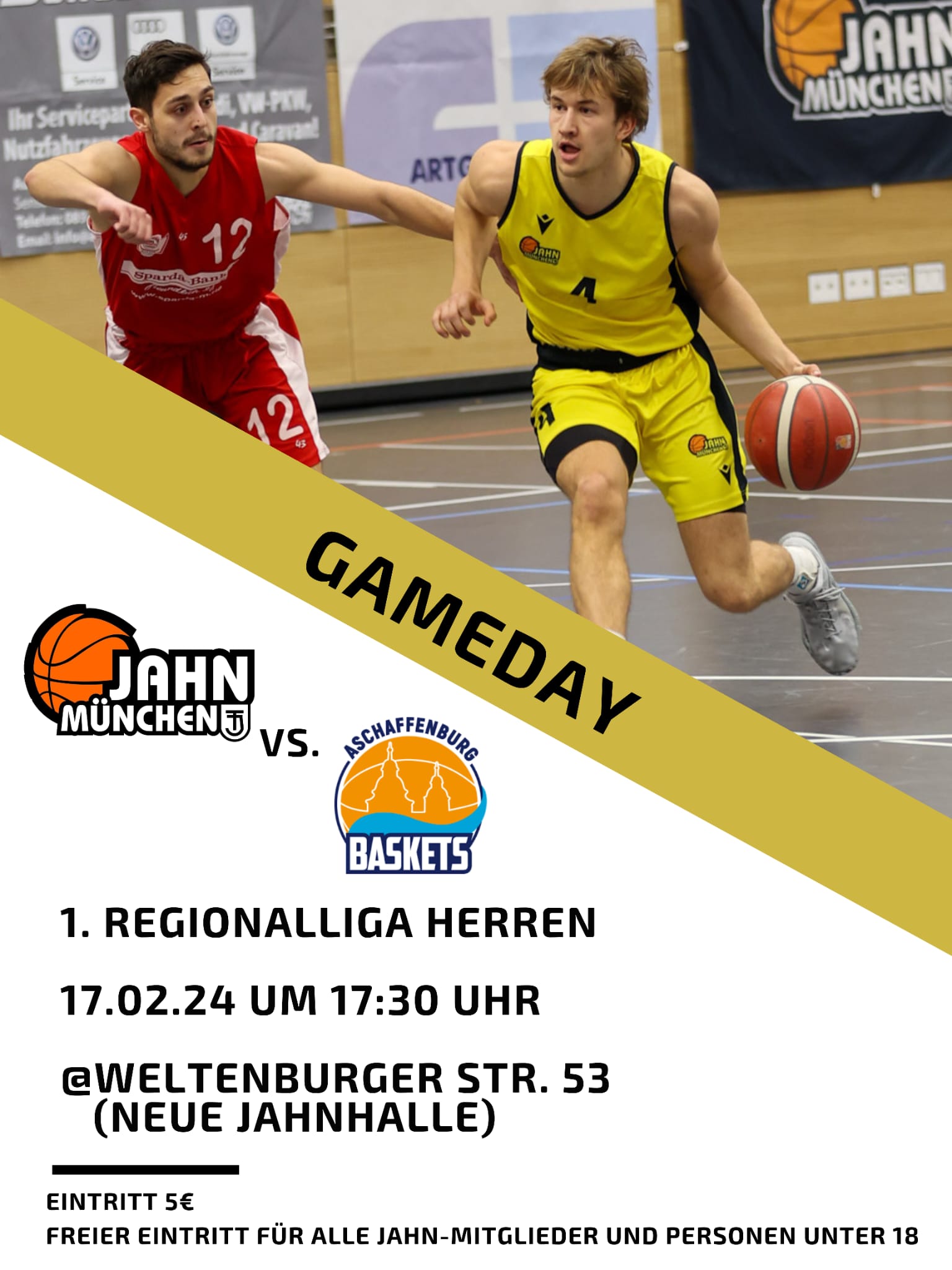 Nach fünf Wochen Wartezeit tritt Jahn Münchens Herren-1 wieder vor heimischem Publikum an. Am Samstag, 17.02., empfängt die Mannschaft von Headcoach Timo Heinrichs die Gäste aus Aschaffenburg. Tipoff ist um 17:30 in der Weltenburger Straße 53.