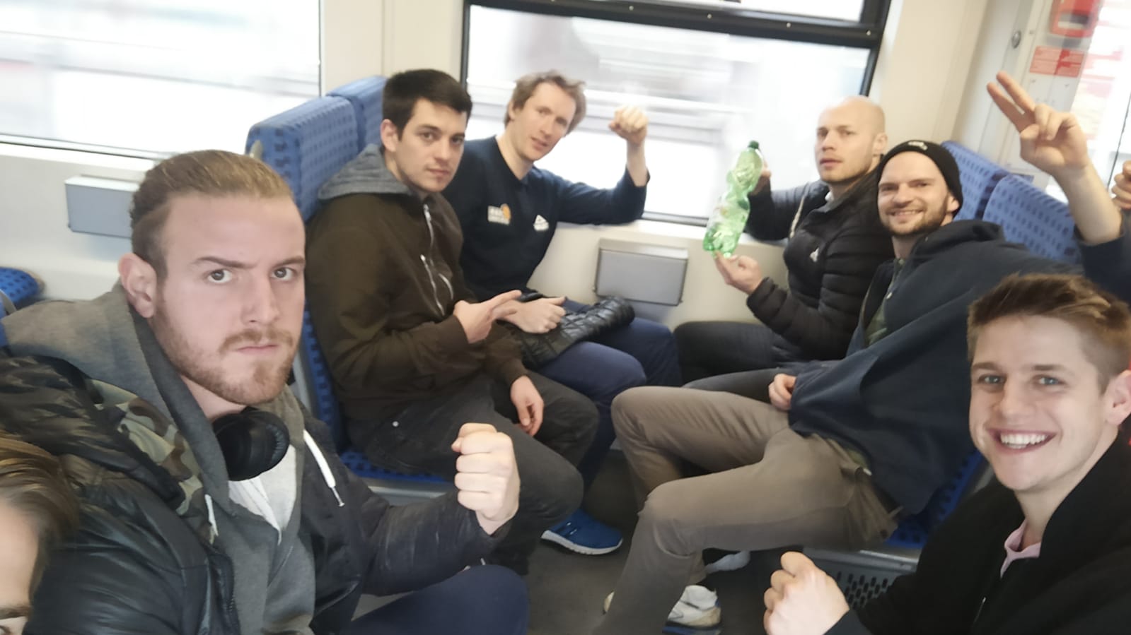 12:18 Uhr: Die S3 fährt pünktlich vom Hauptbahnhof los. Nur die coolsten Leute aus dem Team dürfen hier mitfahren. Philipp und Alvaro reisen jeweils getrennt vom Team mit ihren Eltern an.