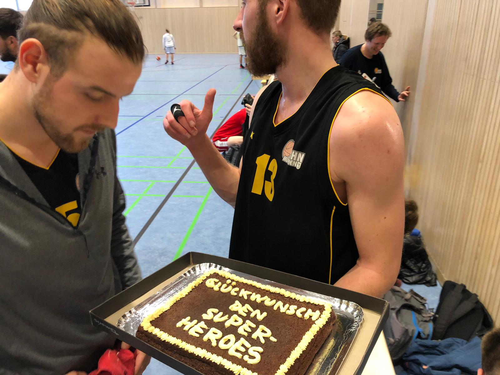 16:14 Uhr: Michis Oma schenkt der Mannschaft einen Kuchen.