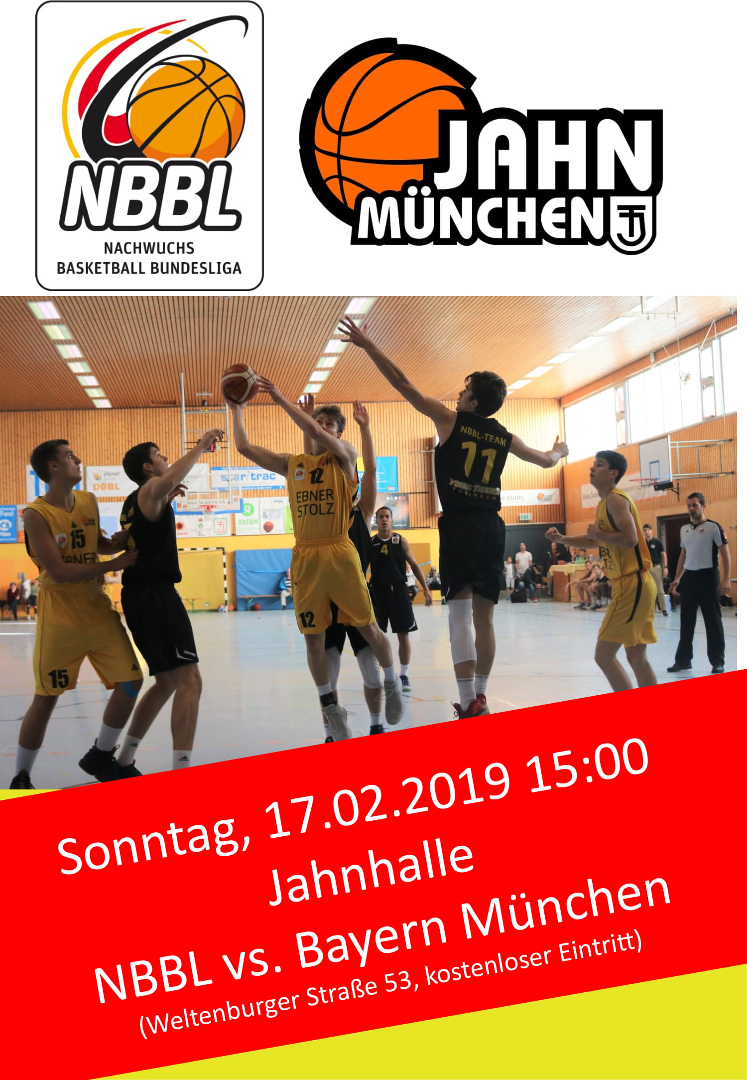 Das nächste NBBL-Spiel findet am Sonntag, den 17.02., um 15:00 in der Jahnhalle statt. Gegner ist der Tabellenzweite Bayern München.