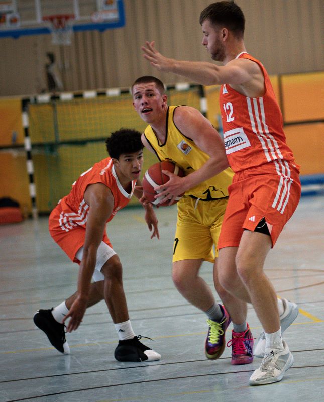 3.) 1x 5 €: Jahn 41% Feldwurfquote, die heimischen Knights verzeichneten 36%, beides sehr jugendgerecht. Aber München hatte (siehe unter 1.)) dreizehn Versuche mehr und durfte daher am Ende ungefährdet mit 86:69 gewinnen und das Punktekonto ausgleichen.
