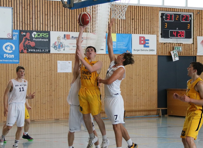 Staunend und etwas fremdelnd („wer bist jetzt du nochmal? Du siehst aus wie der großgewachsene Bruder vom Bobbel?“) tasten sich die Athleten in die Halle. Dort werden sie sogleich von Grobert niedergemäht, weil der zwischenzeitlich in der Pro B für Oberhaching zocken durfte. Oder sie müssen notgedrungen Überflug-Genehmigung erteilen für Air-Vince, der dort immerhin mittrainiert hat. Auch die Juniors wie Toni-Mateo haben gut gearbeitet – so gut, dass sie teilweise mit fiesen Verletzungen Richtung Kampfgericht-Combo schleichen müssen, so ein Pro B-Kollege gibt halt beim Drauf-Landen nicht wesentlich nach.