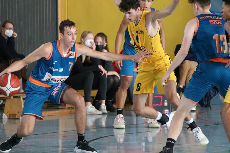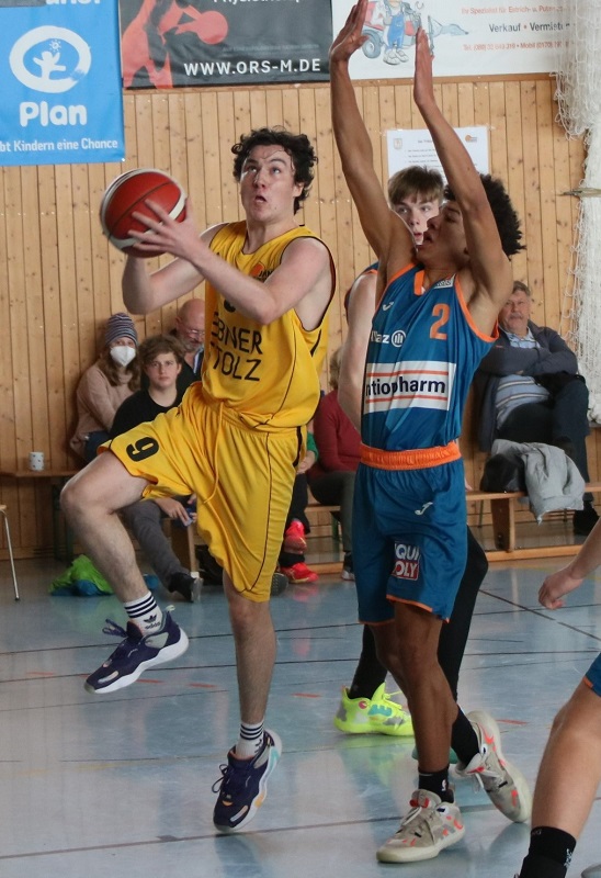 Viertel Nummer Eins. Beide Teams konzentrieren sich auf die Offensive, lassen prächtige Löcher am eigenen Brett, Jahn führt gegen die jungen Ulmer „Orangen“ 21:19, es hätte aber auch andersrum sein können.