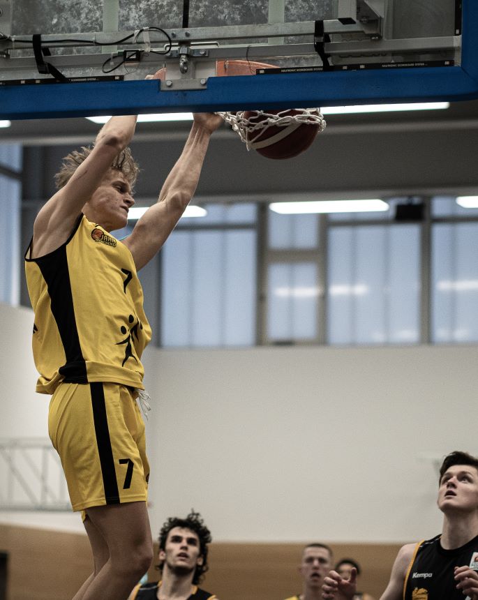 Weiteren Boden möchten Jahns NBBL-Burschen gutmachen, indem sie sich am kommenden Sonntag (15 Uhr, alte Jahnhalle) auch im zweiten Spiel gegen den USC Heidelberg durchsetzen. So wäre in der Anfangstabelle der Abstiegsrunde Süd, die nächste Woche aus den Dritt- bis Sechstplatzierten der Gruppen Süd und Mitte gebildet wird, ein wenig Abstand zur kritischen Zone erreicht. Von acht Teams müssen die zwei letzten in die Relegation 2025/26, jeder nimmt die Ergebnisse aus der eigenen Liga mit und hat noch viermal zwei Matches für die Saisonentscheidung.