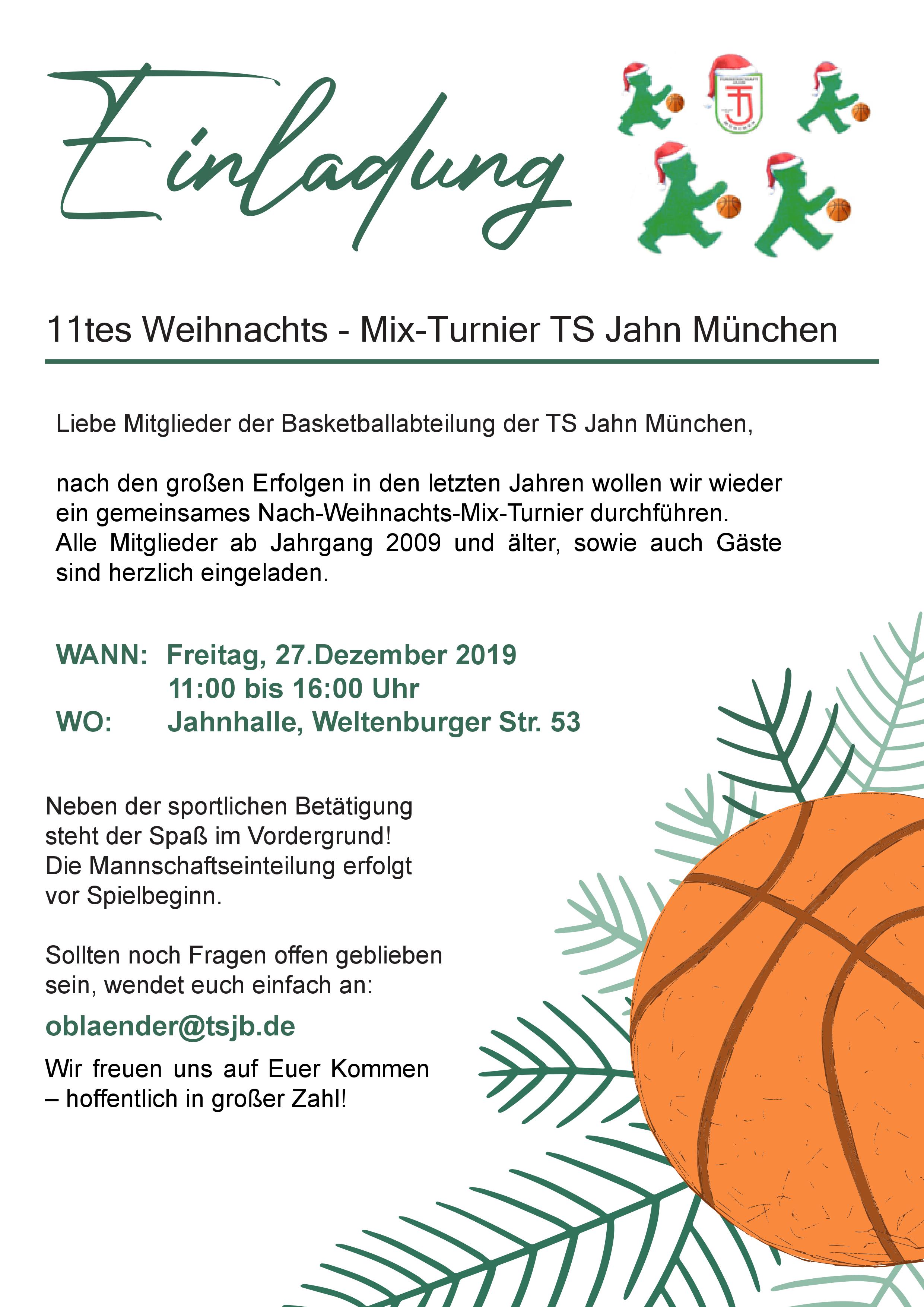 11tes Weihnachts - Mix-Turnier der TS Jahn München am 27.12. in der Jahnhalle