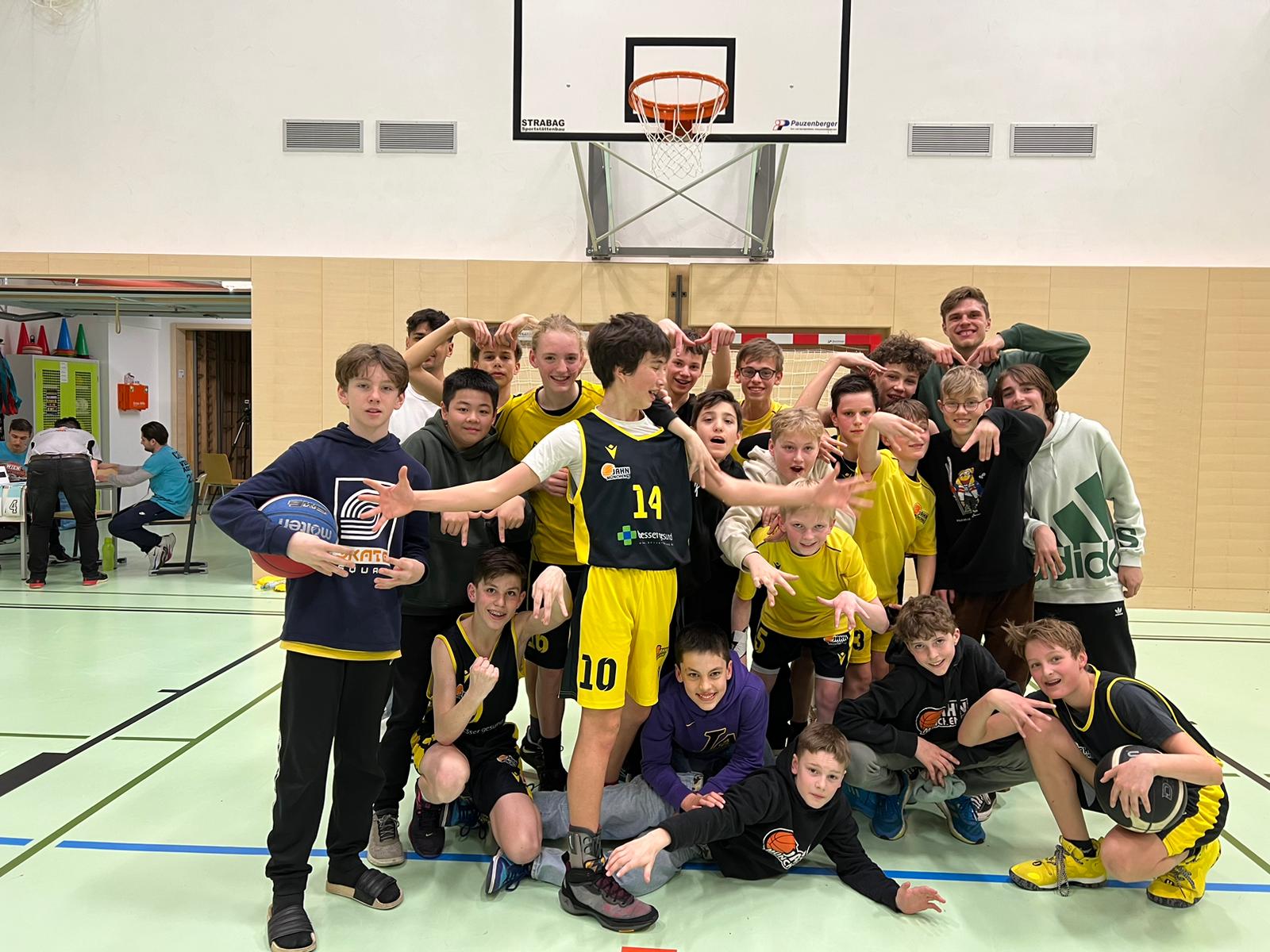 Unser viertes Team war die U13m, welches als amtierender Wiengewinner 2022 sich selbstsicher und souverän durch die Gruppenphase und das Achtelfinale kämpfte. Im Gegensatz zur U12 hatte die U13 keine Probleme mit schlechten Schiedsrichtern, dennoch hatte das Team um die Coaches Ibo und Flo wahnsinniges Unglück bei der Gruppenkonstellation. Im Achtelfinale trafen die Jungs auf deutlich schwächere Gegner als in der Gruppenphase, die übrigens konsequent zwei Spieler unter den Korb stellten und behaupteten, dass dies keine Zonenverteidigung wäre. Da unser Trainer sich einige Tage zuvor von einem Spielervater anhören musste, dass seine Spieler ja keine 3er werfen dürfen und Ibo keine Späße versteht, wurde an die Schiedsrichter kommuniziert, dass sie das Spiel laufen lassen sollen, statt die gegnerischen Trainer wegen Zonenverteidigung zu bestrafen. Somit wurde unseren Spielern in der zweiten Halbzeit verboten innerhalb der Zone zu punkten, was ein spektakuläres 3-Punkte-Fest zur Folge hatte. Unglücklich war das Ganze, da nach so einem Gegner dann im Viertelfinale der stärkste Gegner des Turniers auf uns wartete. Die Coaches waren sich sicher, dass hier eigentlich zwei Finalisten stehen und der Gewinner des Viertelfinals auch der Wiengewinner sein würde (was sich auch als richtig erwies, da die Gegner im Halbfinale und Finale mit +30 verputzt wurden). Auch die anderen U13 Teams wussten das und versammelten sich in der viel zu kleinen Halle. Kurzgefasst war das Spiel wahnsinnig intensiv und hochklassig von beiden Seiten. Letztlich schenkten die Jahnler mit einer bodenlosen Freiwurfquote den Sieg aus der Hand und verloren mit einem Punkt. Somit ging der Traum vom ersten „back to back Sieg in Wien“ leider nicht in Erfüllung.