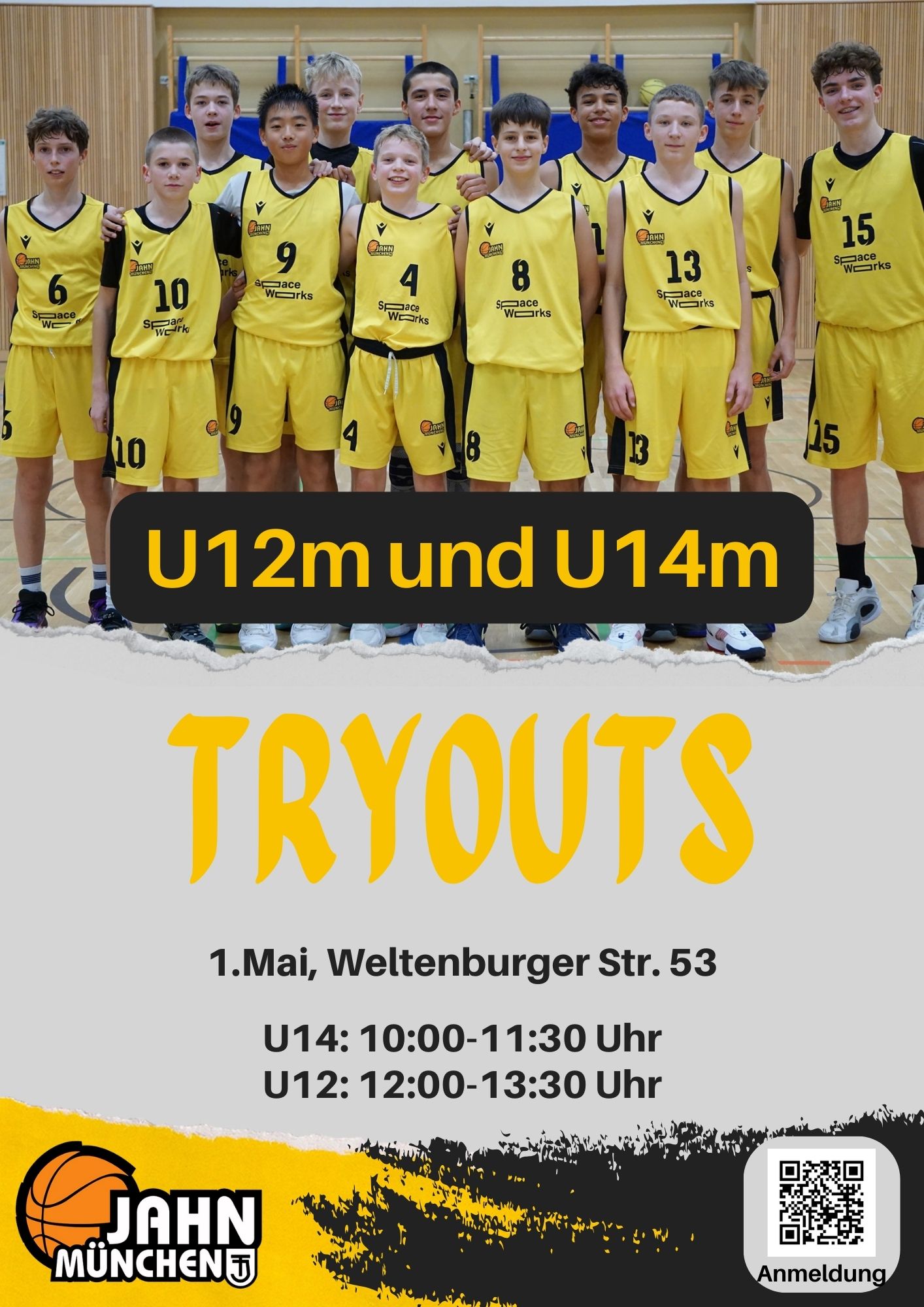 Am 01. Mai finden die offenen Tryouts für unsere U12 Bezirksoberliga- und U14 Bayernliga-Mannschaft statt. Interessierte Spieler können ihr Können vor den Augen unserer Trainerinnen und Trainer zu folgenden Zeiten unter Beweis stellen: