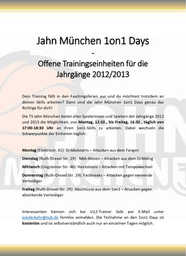 11.02 11.02.2024 07:48 von Sebi Wiederkehr Jahn München 1on1-Days Offenes Ferientraining für die Jahrgänge 2012/2013 mit wechselnden Schwerpunkten für alle Daheimgebliebenen. Infos inside mehr