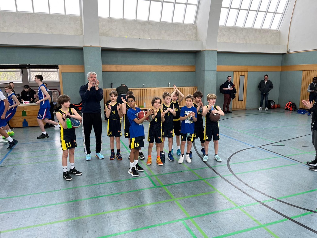 Am Montag hieß es früh aufstehen. Bereits um 8:30 fand das Finale gegen die Stuttgart Eagles, die sich zuvor gegen die Eisbären durchgesetzt hatten, statt. Die US-Boys brannten sichtlich auf Revanche für das verlorene erste Turnierspiel. Dies führte zu einer durchgehend lautstarken „Kommentierung“ aller Vorgänge auf dem Spielfeld (Rebound der Münchner = Foul; Ballverlust der US-Boys = Jahn-Foul; usw.). Letztlich wurde der US-Coach von den souveränen Schiedsrichtern in der zweiten Halbzeit mit disqualifizierendem Foul der Halle verwiesen – in einem U-10-Spiel! Die Münchner waren jedoch das defensiv bessere Team und konnten das Finale (immer wieder Punkte zum richtigen Zeitpunkt: Philipp F.) mit 25:18 gewinnen. Überglücklich fielen sich die Jahn-Jungs gegenseitig um den Hals. Spoiler: Bei den internationalen United World Games in Klagenfurt im Juli werden beide Teams wieder aufeinandertreffen.