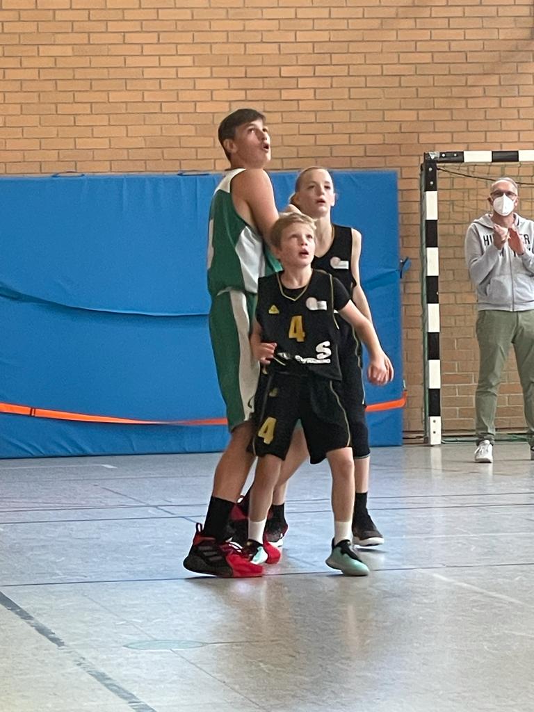 Beim Anblick des Gegners waren die anwesenden Eltern von der Größe zweier Unterhachinger ebenso beeindruckt wie von den auf normaler Höhe hängenden Körben, doch die Jahn-Spieler taten einfach das, was sie so erfreulich in jedem Spiel machen- unbeschwert aufspielen, sich nicht vom Gegner irritieren lassen, selbst wenn der zu Beginn abgezockter und treffsicherer wirkt, tollen Teambasketball spielen und unerschrocken wie ein Fels stehen bleiben, selbst wenn ein Riesenunterhachinger auf einen zustürmt (und infolgedessen umschmeißt) und ein Offensefoul ziehen. Die Coaches belohnen ihre Jungs schließlich auch mit Cookies für jedes gezogene Offensefoul, kein Wunder also, dass einer der Jahnspieler im Laufe des Spiels für’s Flopping verwarnt werden musste...