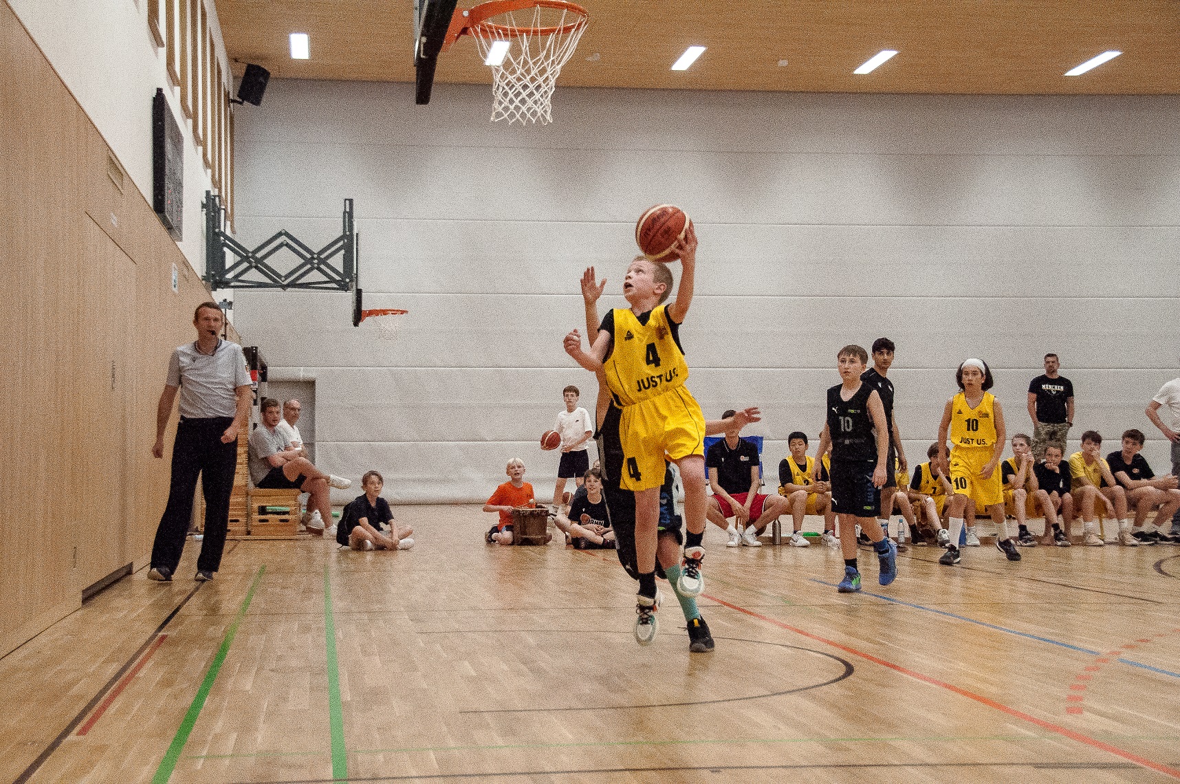 Am Samstag erschien dann eine halbe Stunde vor dem Tipp-Off ein Unbekannter am Kampfgerichtstisch, und die Freude war groß, dass zumindest schon mal ein Schiedsrichter da war. Aber weit gefehlt, es war stattdessen der BBV-Kommissar für die Einhaltung der Manndeckungsregeln U8-U12. Doch, doch, so jemanden gibt es wirklich, alle waren beeindruckt. Schließlich kamen auch die Schiedsrichter in die Halle, und die erste Partie konnte starten, Jahn gegen Post SV Nürnberg. Die Nachwuchshoffnungen von Jahn gewannen zwar 77:51, vergaßen aber kurzfristig, dass ihre eigentliche Stärke der Teambasketball ist. Das besserte sich aber im Laufe des Turniers, gegen Bayreuth wurde 98:41 gewonnen, gegen den BBC Würzburg mit 80:46.