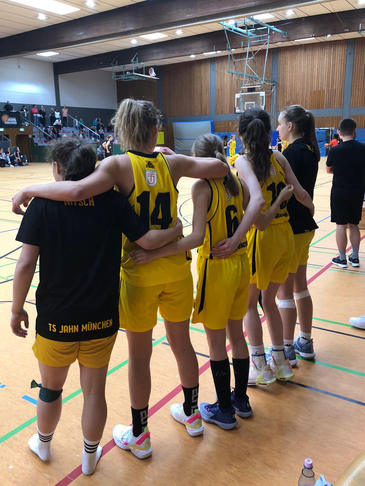 Ein neuer Tag, ein neues Glück – allerdings diesmal mit einem gut bekannten Gegner. Das Viertelfinale zwischen zwei bayerischen Teams (Sieger 1 Gruppe B vs. Sieger 4 Gruppe A) stand an. Die TG 48 Würzburg hat uns bislang Spiele immer schwierig gestaltet. Wir konnten die Gegner jedoch aufgrund einer guten defensiven Leistung bei 0% Dreiern halten, während wir mit 42% aus dem Spiel gehen. Zeitgleich ein absolutes Highlight: Ein Block unserer Aufbauspielerin #11 Alex. Den Sieg tüteten wir mit 66:40 ein! Topscorerin: #8 Julia (21 Punkte, 8 Rebounds).