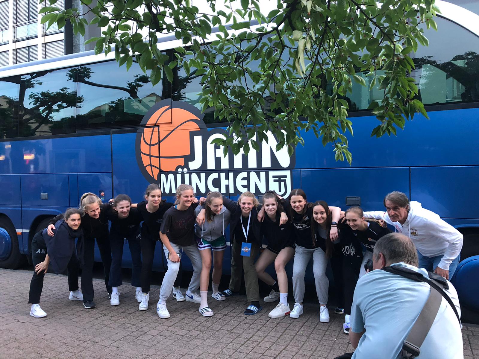 Mittwochabend war es so weit – die lange Reise von München nach Hofheim zur Deutschen Meisterschaft. Nach wenigen Stunden Schlaf ging es für die 11 Mädels am nächsten Morgen direkt die Halle erkunden. Ein kleines Shoot-Around stand an, die letzten Würfe wurden genommen und mit dem Branding und den Werbeflächen vor Ort wurde immer klarer: Die Stunden bis zum ersten Spiel sind gezählt.