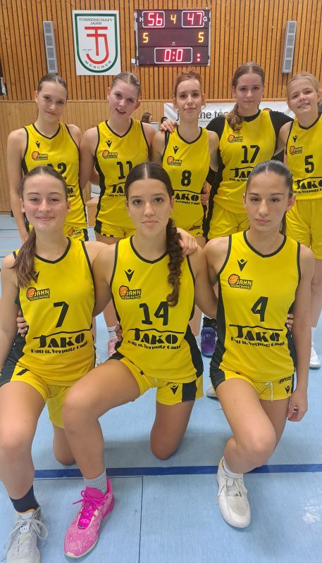 Damit noch nicht genug der Einsätze… Sonntagfrüh ging es in der angestammten Bayernliga U16 zu einem der Lokalrivalen, zum MTV München. Nach zähem und verschlafenem Ringen hieß es 62:50 (32:19) für die Jahnlinge, weil sich Gesa Geiger (15p, 1x3), Johanna Hofmann (12p, 2x3), Mina Schulz (12p, 2/2fw) und ihre Kolleginnen etwas früher aufrappeln konnten. „Nicht schön, aber siegreich“, so der Kommentar der Coaches Armin Sperber und Lars Rzymianovics.