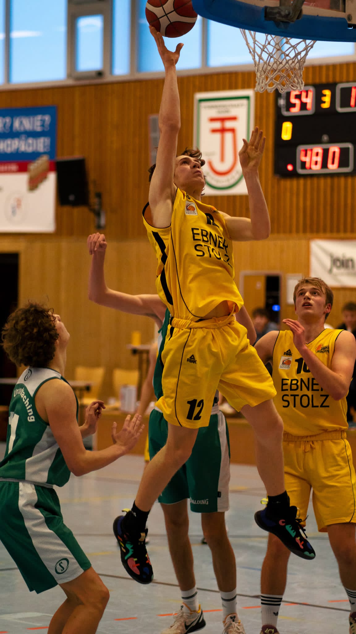 Mit 8:0 Siegen steht die U18 also ungeschlagen an der Tabellenspitze, Schwabing steht dahinter schon bei 2 Niederlagen. Besonders erfreulich: Das Team hat die beste Freiwurfquote der Liga. Eine Statistik, in der man die Jahre zuvor doch deutlich hinterherhinkte. Dass man die meisten Dreier trifft, ist nicht mehr neu. Topscorer des Teams sind Kapitän Emil Zrinyi und Vale Bock (beide 16 pro Spiel), Ben Hofbauer (19 pro Spiel) und die beiden Natio-Helden Kyle und Jannis (beide 17 pro Spiel bei aber nur 5 bzw. 3 Spielen).
