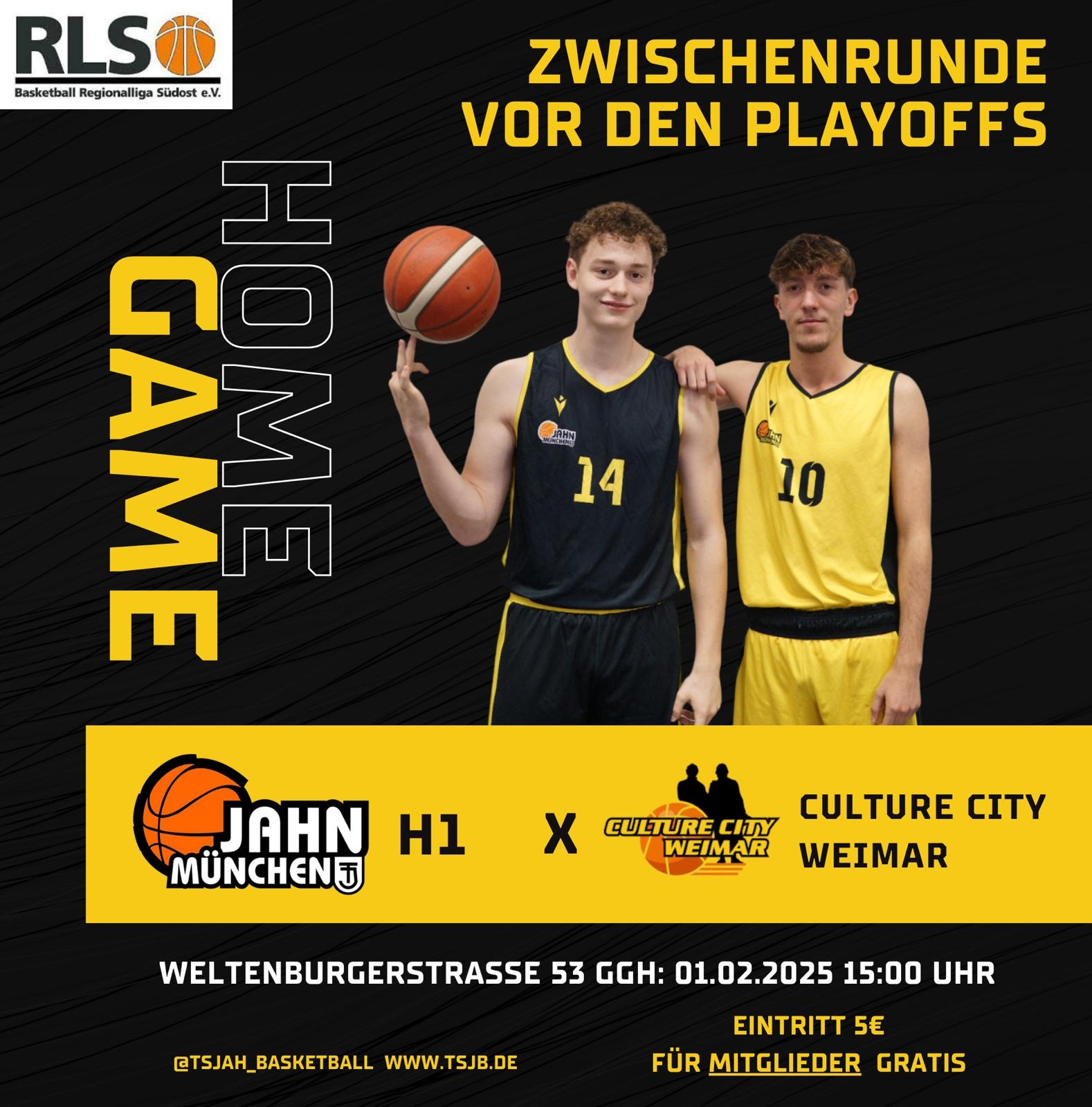 Am kommenden Samstag, dem 01.02.2025, steigt um 15 Uhr an der Weltenburger Straße ein Duell, welches es so noch nicht gab: erstmals in der Vereinsgeschichte empfängt Jahn München die Gäste aus Weimar. Während die Thüringer schon seit Jahren zu einem der Topteams der Liga zählen und ständiger Gast in den Playoffs sind, machten die Jahnler gegen Nördlingen am letzten Spieltag der Vorrunde den erstmaligen Playoffeinzug im erst zweiten Jahr in Deutschlands vierter Spielklasse klar. In der Vereinshistorie gab es noch kein Duell (außer einem Testspiel in München im September 2024, hier gewannen die Gäste mit 12 Punkten Differenz) und so freuen sich beide Teams auf eine sicher sehenswerte Partie.