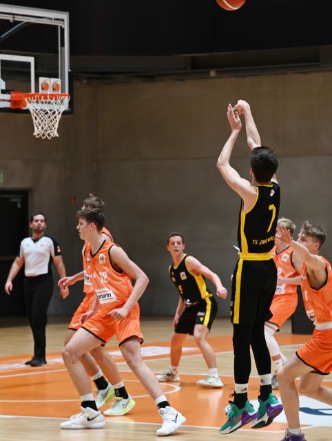Die Hausherren lochten gleich mal satte 33 Punkte im ersten Viertel ein, am Ende hatten sie 47% aus dem Feld und 62% von der Linie. Aber die Jahnlinge streiften die Anfangslähmung angesichts von Schnelligkeit und Körperhöhe der Gegner bald ab und begannen phasenweise mitzuspielen. 16:20/18:20/14:19 die weiteren Quartalsergebnisse, dabei war Mateo Jukic wieder Jahns Topscorer (16, vier Dreier), Ben Tenkmann wie gewohnt der solide Toprebounder (9, dazu 14 Punkte bei 22 Effektivität) und Daniel Fackler rundete seine Leistung mit 12 Punkten (zwei Dreier, 4/4 Freiwürfe) ab.